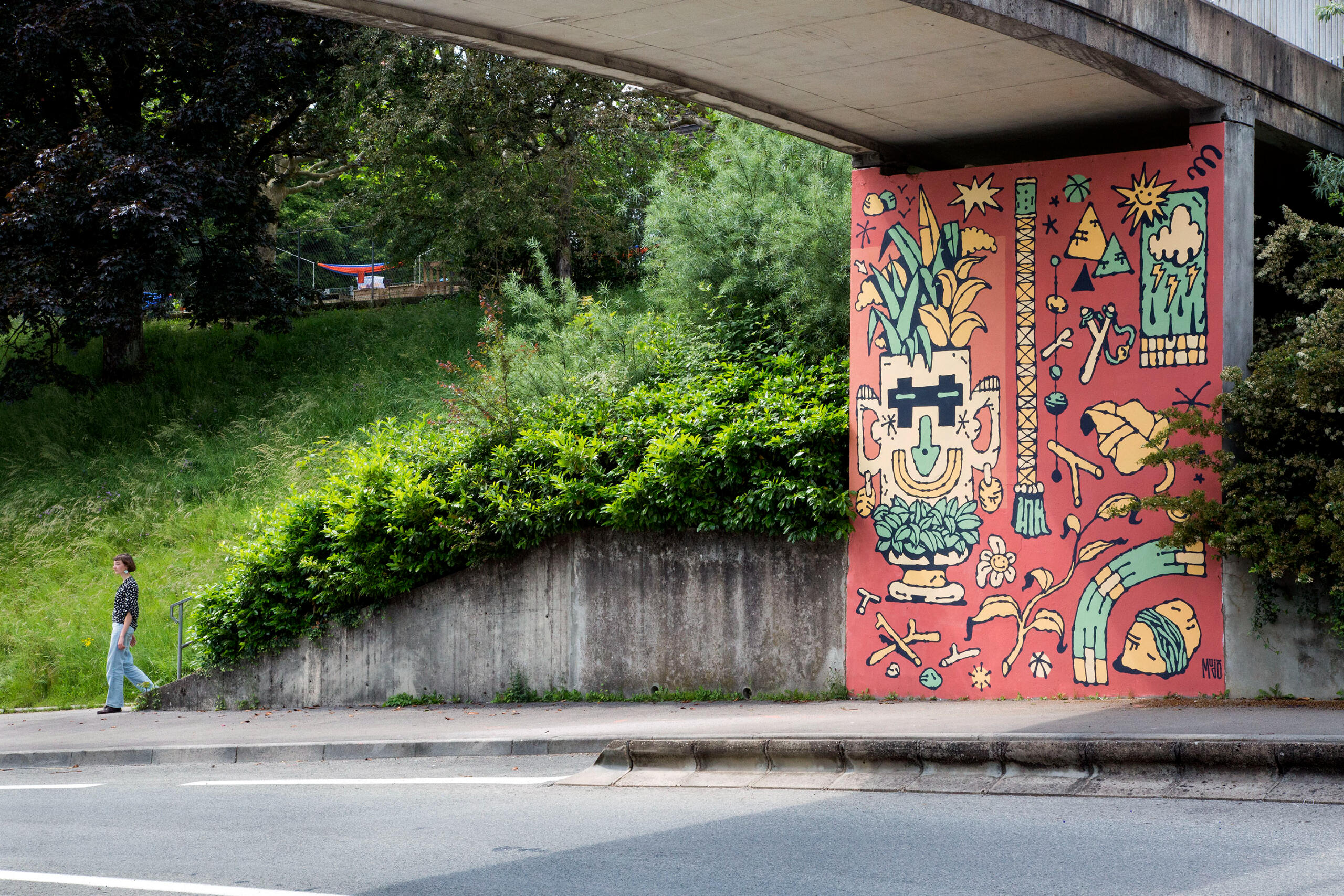 J’y retrouve par ces gestes libérés, une manière d’ouvrir un passage vers l’inconscient , de m’adonner à l’errance... comme lors de mes promenades.Ma pratique de la peinture dans l’espace public, la co-création au travers de projets pédagogiques, m’a mené à lier la peinture, l’humain et l’environnement. J‘accorde une grande importance à créer une connexion entre mes productions et le contexte dans lequel elles naissent.